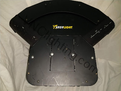 Super unique lighting effect from Teclumen / EasyLight. This is the Sector Light 400SA unit. From the exterior the light unit looks like a common derby unit but produces an interesting effect. 9 pure white beams are projected from the unit as 'Fingers' of light that can be used as an accent or powerful effect such as a strobe. Very similar to a Clay Paky Atlas unit but the douser moves up and down instead of side to side. The light source is a 54 volt, 400 watt Phillips Short Arc lamp that creates a powerful pure white beam. The lamp is housed in the rear of the unit and mounted in front of the lamp is a shutter. This shutter acts as a blackout douser and also a strobe effect. The douser / shutter is operated from a standard stepper motor. Control is 0 - 10 volt analogue, dedicated controller or sound active from the on board microphone / sound trigger circuit. Unit is built very well and has considerable weight. Multiple units can be linked together for synchronized operation. Dip switches on the rear are used for personality assignment. Fixture made in Italy.